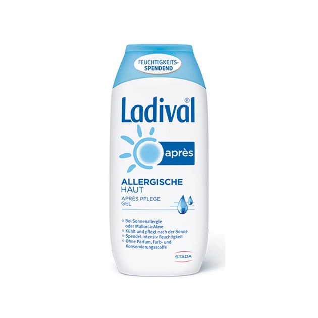 Das besonders leichte Ladival® Après Pflege Gel Allergische Haut enthält weder Fette noch Emulgatoren. Es ist speziell geeignet bei Neigung zu Sonnenallergie oder Mallorca-Akne, aber auch bei einer eher fettigen Haut.