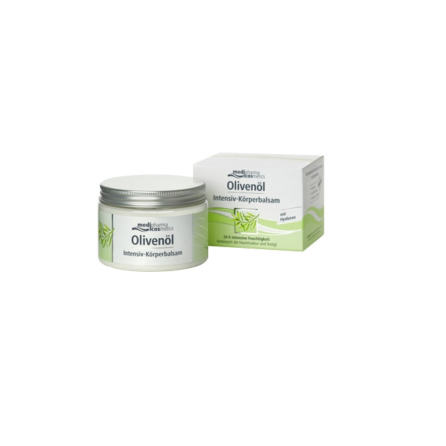Der Intensiv-Körperbalsam enthält hochwertiges Olivenöl der Extraklasse, Vitamin E und wertvolle Hyaluronsäure. Die wertvollen Pflegewirkstoffe spenden 24 Stunden intensive Feuchtigkeit und schützen die Haut vor dem Austrocknen. Die Hautstruktur wird verbessert und fühlt sich zart gepflegt an. Schon beim Auftragen spüren Sie, wie schnell die Feuchtigkeit von der Haut aufgenommen wird. Für frische, pralle Haut.