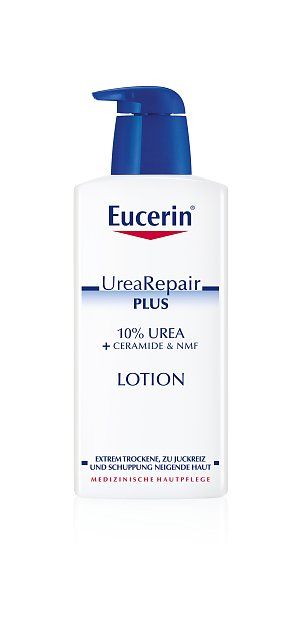 Die Eucerin UreaRepair PLUS Lotion 10% enthält den einzigartigen, hautverwandten Repair-PLUS-Komplex: Urea und natürliche Feuchthaltefaktoren (Natural Moisturing Factor = NMF) spenden und binden intensiv Feuchtigkeit und sorgen so für einen gesunden Feuchtigkeitsgehalt der Haut. Zusätzlich stärken Ceramide die physiologische Hautbarriere, damit die Feuchtigkeit nicht entweichen kann.