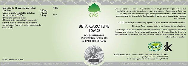 Beta Carotin ist ein Antioxidans. Es hilft Zellen dabei Krankheiten abzuwehren, indem Freie Radikale aus dem Körper entfernt oder neutralisiert werden. Außerdem stärkt es die Abwehrkräfte und wird für die Gesunderhaltung der Haut und Schleimhäute benötigt.