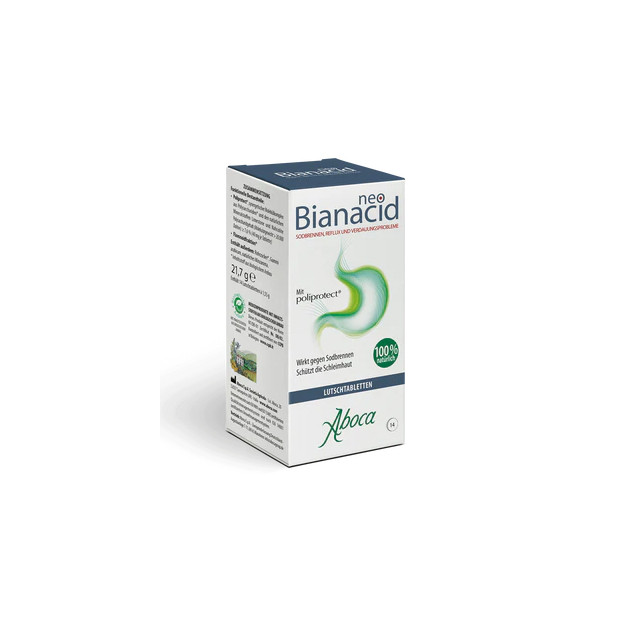 NeoBianacid ist ein Produkt auf Basis pflanzlicher und mineralischer Molekülkomplexe, das schützend und deshalb schmerzlindernd auf die Schleimhaut des Magens und der Speiseröhre wirkt und somit den typischen Symptomen gereizter und entzündeter Schleimhaut wie Sodbrennen, Schmerzen und Säuregefühl rasch entgegenwirkt.