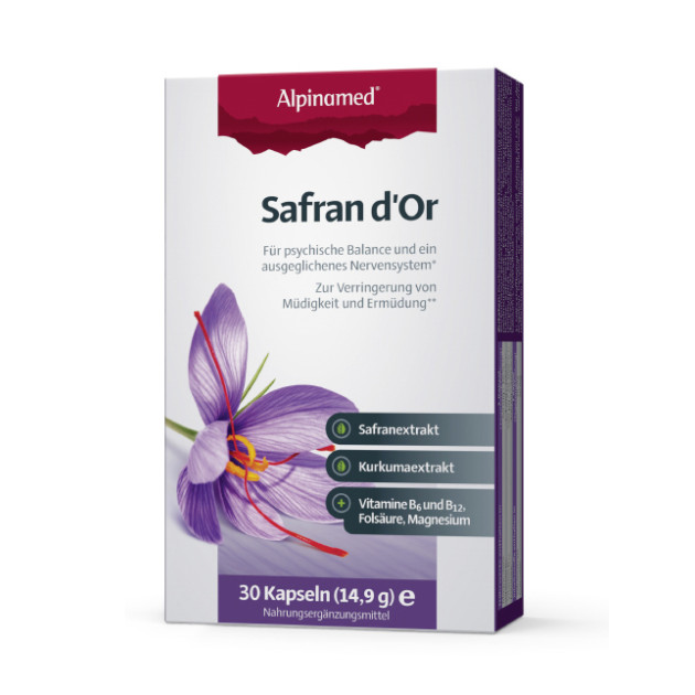 Safranextrakt (30 mg), Curcumin (30 mg) aus Kurkumawurzelextrakt, Vitamin B6 (1,4 mg), Vitamin B12 (500 μg), Folsäure (400 μg) und Magnesium (60 mg)