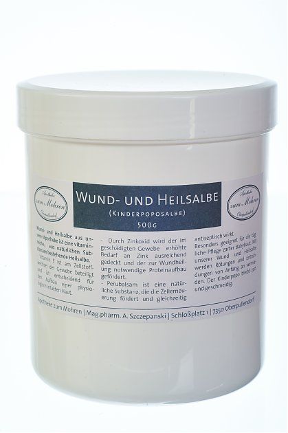 Die Wund- und Heilsalbe mit Vitamin E (Kinderpoposalbe) ist eine vitaminreiche, aus natürlichen Substanzen bestehende Heilsalbe ohne Cortison und Antibiotika.