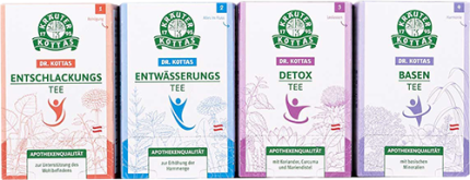 Neustart für den Körper - Zur Unterstützung beim Fasten oder bei Ihrer Diät gibt es 4 bewährte DR. KOTTAS Kräuterteerezepturen.