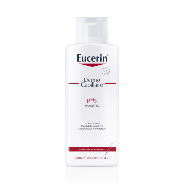 Gesunde Haut hat einen pH Wert von 4,5 bis 5,5 , so dass die Haut leicht sauer ist. Diese natürliche Säure schützt Ihre Haut vor schädlichen Bakterien und anderen Substanzen. Wenn das natürliche Gleichgewicht gestört ist – z.B. durch Hitze, Kälte, Krankheiten, Kosmetika oder Stress – reagiert die Kopfhaut empfindlich. Eucerin DermoCapillaire pH5 SHAMPOO wurde speziell entwickelt, um den natürlichen pH Wert Ihrer Haut zu bewahren. Es reinigt besonders mild und schützt vor Trockenheit und Irritationen. Es entfernt Schmutz, Pollen und andere Allergene und verleiht dem Haar gesunden Glanz und ein geschmeidiges Gefühl.
