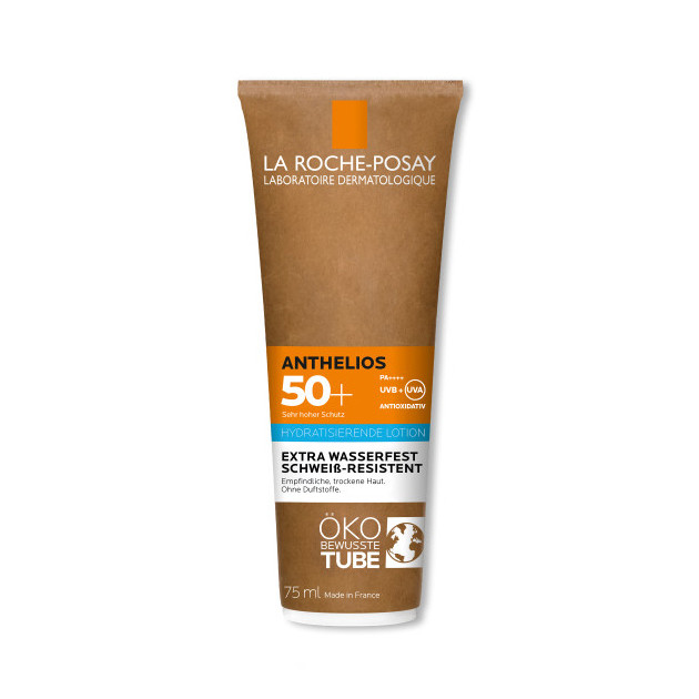 Die ANTHELIOS Hydratisierende Milch LSF 50+ für den Körper schützt zuverlässig vor schädlichen UVA- und UVB-Strahlen. Dank Glycerin und Thermalwasser aus La Roche-Posay spendet sie bis zu 24 Stunden Feuchtigkeit. Dank Netlock-Technologie bildet die samtige Formel der ANTHELIOS Hydratisierende Milch LSF 50+ von La Roche Posay einen wasserfesten, sand- und schweißresistenten Schutz. Zudem verläuft, fettet sowie klebt der Sonnenschutz für empfindliche Haut nicht und hinterlässt keine weißen Rückstände. Die innovative Papp-Tube enthält FSC- oder PEFC-zertifizierte Pappanteile und spart, im Vergleich zur bisherigen Plastiktube, 45 % Neuplastik ein.