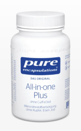 Pure Encapsulations® All-in-one Plus (ohne Cu/Fe/Jod) beinhaltet ein umfangreiches Spektrum an Vitaminen und Mineralstoffen. Die Verwendung naturidenter, aktivierter Verbindungen garantiert dabei eine unvergleichbar hohe Aufnahme (Bioverfügbarkeit) der Mikronährstoffe. Die hypoallergene Formulierung gewährleistet maximale Verträglichkeit. Da die Rezeptur bewusst ohne Jod erstellt wurde, ist sie auch für Personen geeignet, die ernährungsphysiologisch auf Jod verzichten müssen.