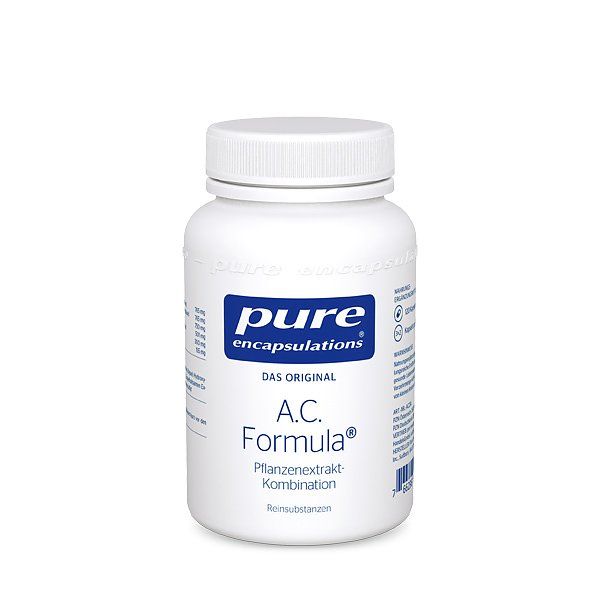 Pure Encapsulations® A.C. Formula® ist gänzlich frei von probiotischen Stämmen und basiert auf hochwertigen, naturidenten Reinsubstanzen. Höchstmögliche Qualitätsstandards garantieren, dass die verwendeten Inhaltsstoffe maximal verträglich sind und eine optimale Bioverfügbarkeit aufweisen. Deshalb gelten wir auch weltweit als das Original bei Reinsubstanzen. Zum leichten Leben bedarf es wenig. Pure Encapsulations® A.C. Formula® ist laktosefrei, fruktosefrei und glutenfrei. Auch auf künstliche Farb- und Geschmacksstoffe hat man bei Pure Encapsulations® verzichtet. Ganz rein eben.
