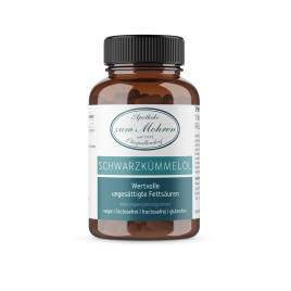 Schwarzkümmelöl (Nigella sativa) gehört zur Familie der Hahnenfußgewächse und ist reich an den ungesättigten Fettsäuren Gamma-Linolensäure und Linolsäure. Zudem ist es ein guter Lieferant für Vitamine, Mineralstoffe, Saponine, Phytosterole und ätherische Öle.