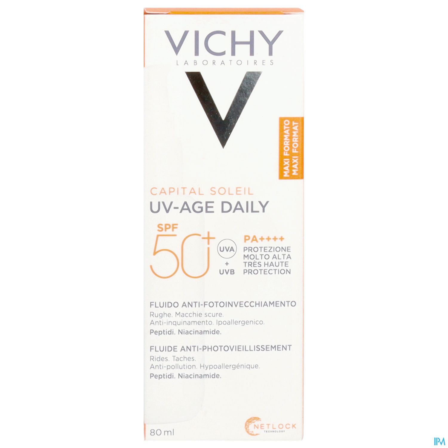 Mehr als 80 % der Alterserscheinungen werden durch tägliche UV-Strahlung und Umweltverschmutzung verursacht. UVA-Strahlen sind das ganze Jahr über vorhanden, auch an bewölkten Tagen. Schütze deine Haut vor vorzeitiger Hautalterung und wende CAPITAL SOLEIL UV-AGE DAILY täglich als letzten Schritt der Hautpflege an. Trage dazu 5 bis 6 Pumpstöße auf die Gesichtshaut und insbesondere rund um die Augen und am Hals auf. Dank Netlock-Technologie bietet die CAPITAL SOLEIL UV-AGE DAILY einen UV-Schutzfilm mit hohem Tragekomfort. Diese fortgeschrittene Technologie basiert auf dem Emulsionsprinzip: UV-Filter sind in Gel-Mikrotröpfchen eingeschlossen, die nach dem Auftragen auf die Haut einen ultradünnen, gleichmäßigen und langanhaltenden Film bilden.
